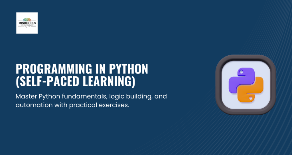 A beginner-to-intermediate Python Programming course covering core Python, data handling, Pandas, NumPy, and data visualization with hands-on learning and certification.